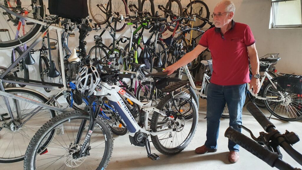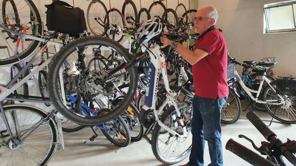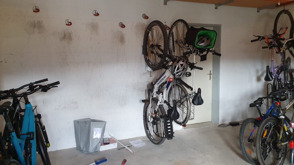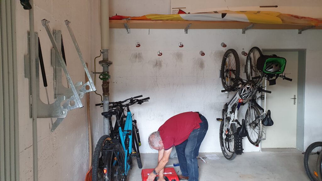 Unser hauseigener Mann für alles, Benno Moser, hat auf Anregung vom Ausschuss und nach Rücksprache mit der Verwaltung im stets überfüllten Veloraum 4 velopa-Fahrradparker montiert. Drei Modell sind für Velos ohne Motor, eines für eBikes (gelbe Feder).